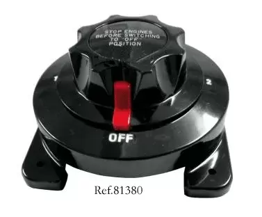 With this battery selector we can select the battery we want to consume (battery no. 1 or battery no. 2) or disconnect both.