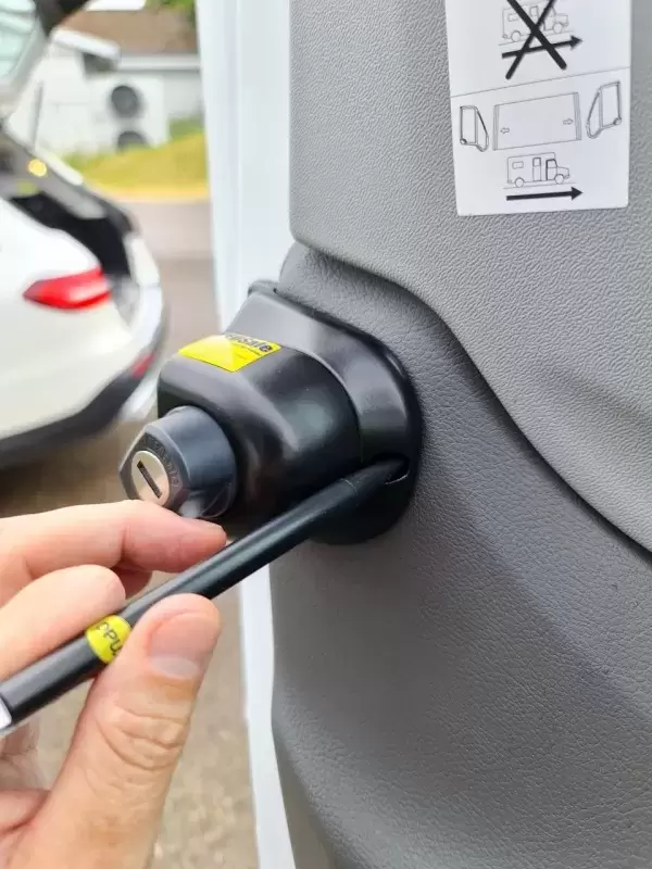 Diseñado específicamente para adaptarse al sistema de cierre de la puerta, este accesorio robusto ayuda a prevenir robos y proporciona una mayor tranquilidad mientras disfrutas de tu viaje.