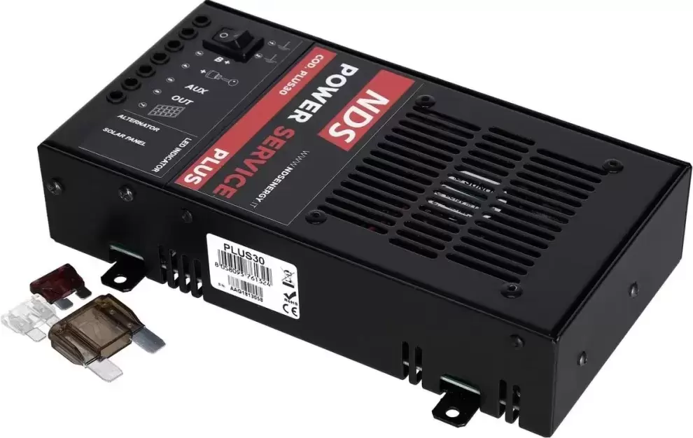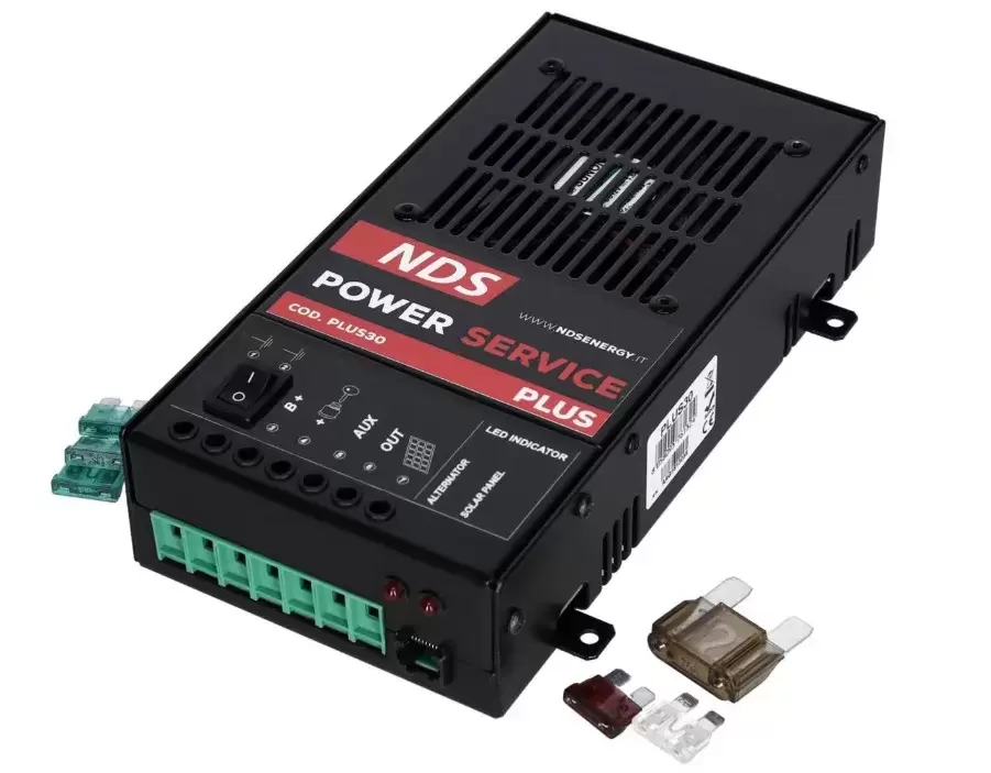 El cargador para su alternador y sistema solar. Esto garantiza que su batería de servicio nunca se quede sin energía. El NDS Power Service es un cargador de batería controlado por microprocesador que utiliza su alternador y paneles solares en lugar de la red eléctrica.