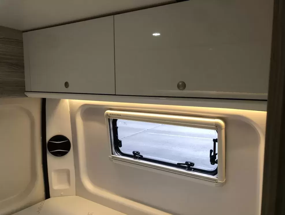 Si no necesita espacio de almacenamiento y desea más espacio, la distancia prevista entre el panel y la pared de la furgoneta es de 25-30 mm, donde se ubicarán el aislamiento y el marco de la ventana.