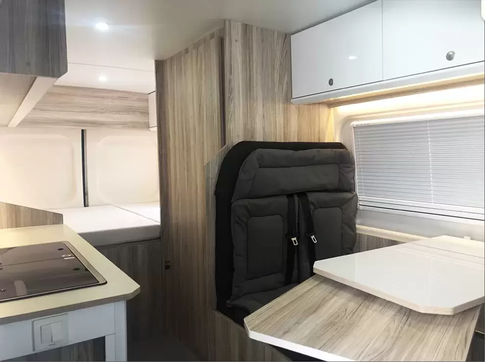 La distancia prevista entre el panel y la pared de la furgoneta es de 25-30 mm, donde se ubicarán el aislamiento y el marco de la ventana.