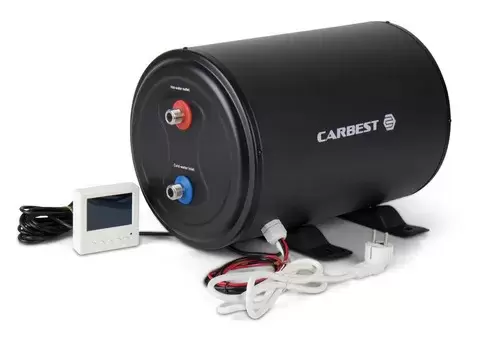 Calentador Boiler de agua caliente Carbest 10 litros a 12V/230 V ,200W con Display digital programador para caravanas, autocaravanas, camper y 4x4 overland.