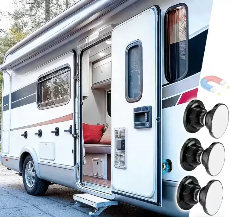 Retenedor de puerta redondo negro con bola magnético para caravanas, autocaravanas y camper.