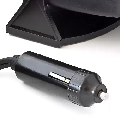 The heater-fan. It has a fan function. Ideal for removing condensation from the glass of utility vehicles, rally cars, boats, caravans, campers or any place where there is a 12-volt power outlet.