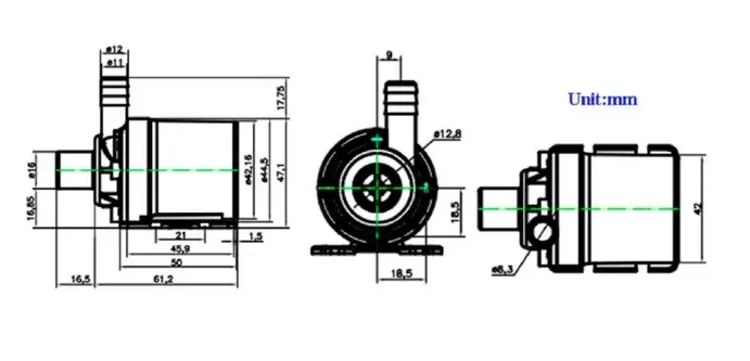 Replacement pump for the new model of Neil air conditioner, it can be installed either punctured to the bottom of the tank or submerged in it. Advisable installation outside the tank.