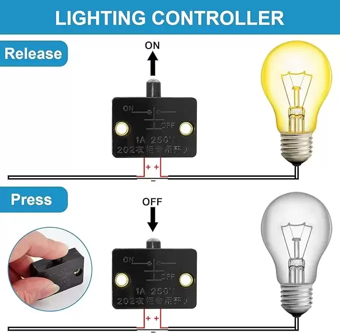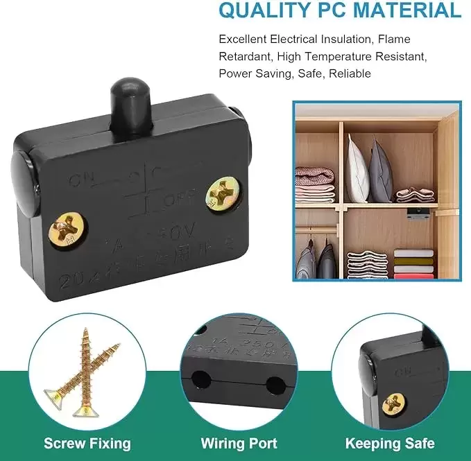 12V sensor switch with push button for doors and cabinets of caravans, motorhomes and campers.