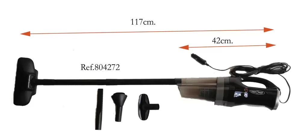 Compact 12v vacuum cleaner with several accessories that will allow us to use it even while standing up to vacuum the floor of our vehicle.
