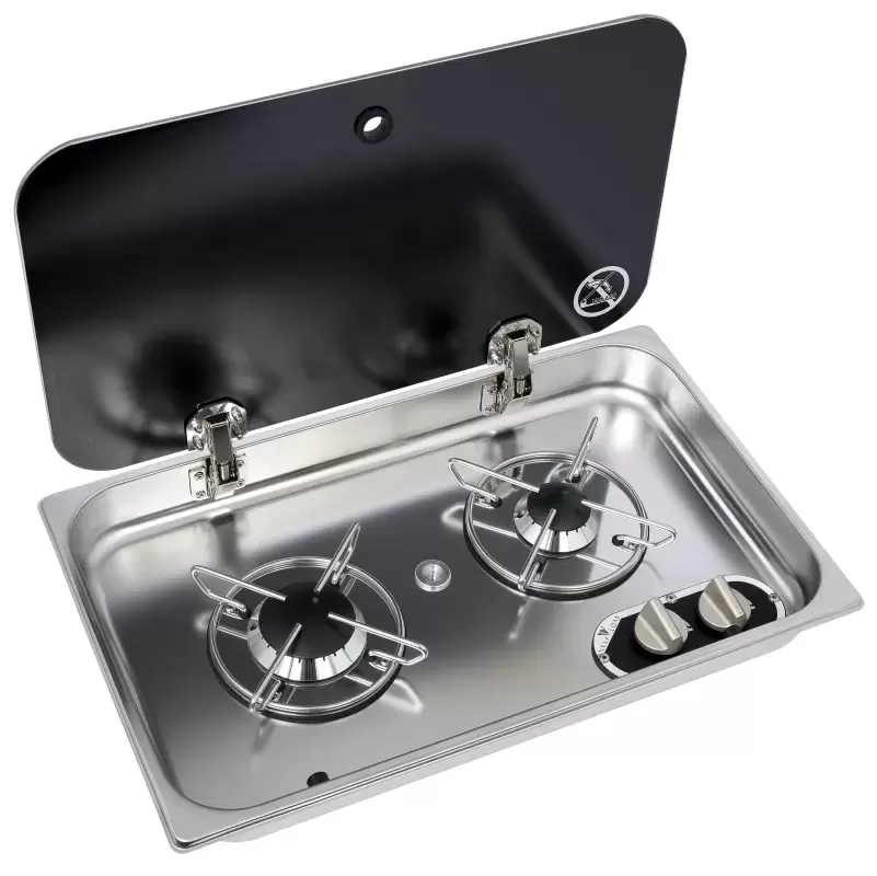 2-burner cooker NAVY LOAD NL21000 Stainless steel with glass top for caravans, motorhomes and campers. - Ref. NL21002