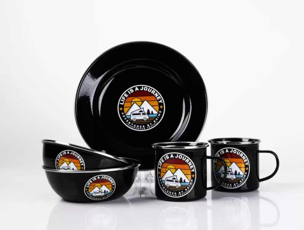 6-piece enameled tableware for 2 people, LIFE IS A JOURNEY.