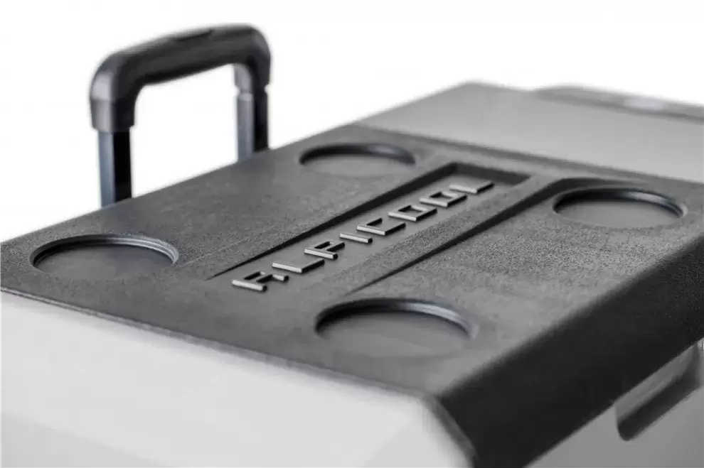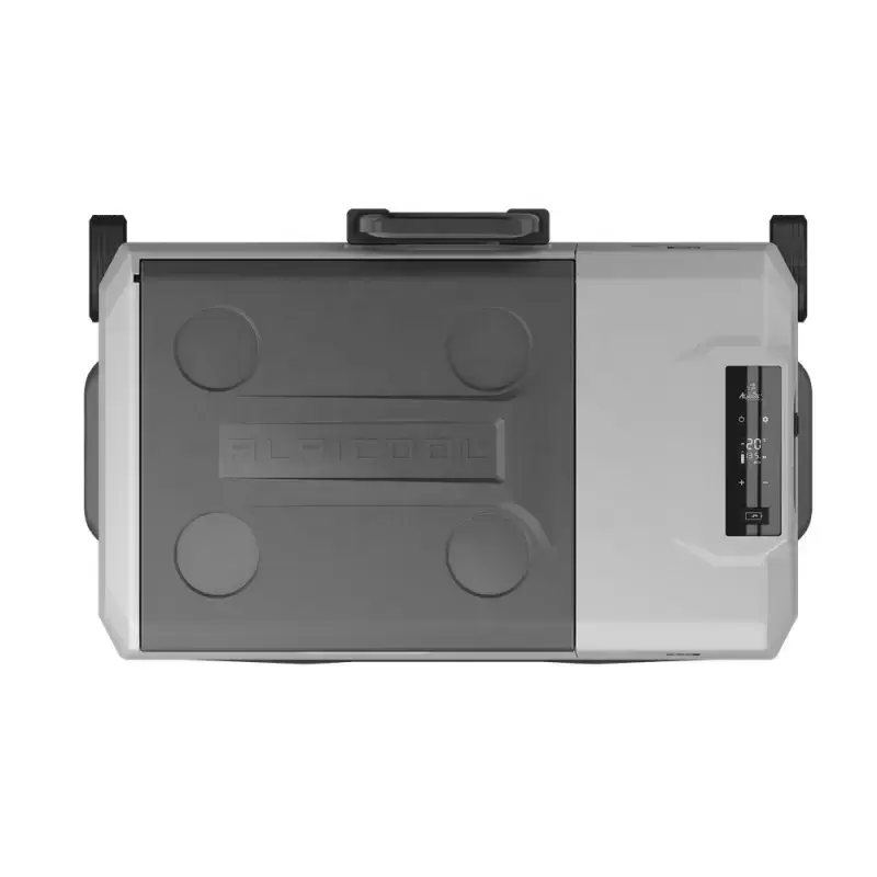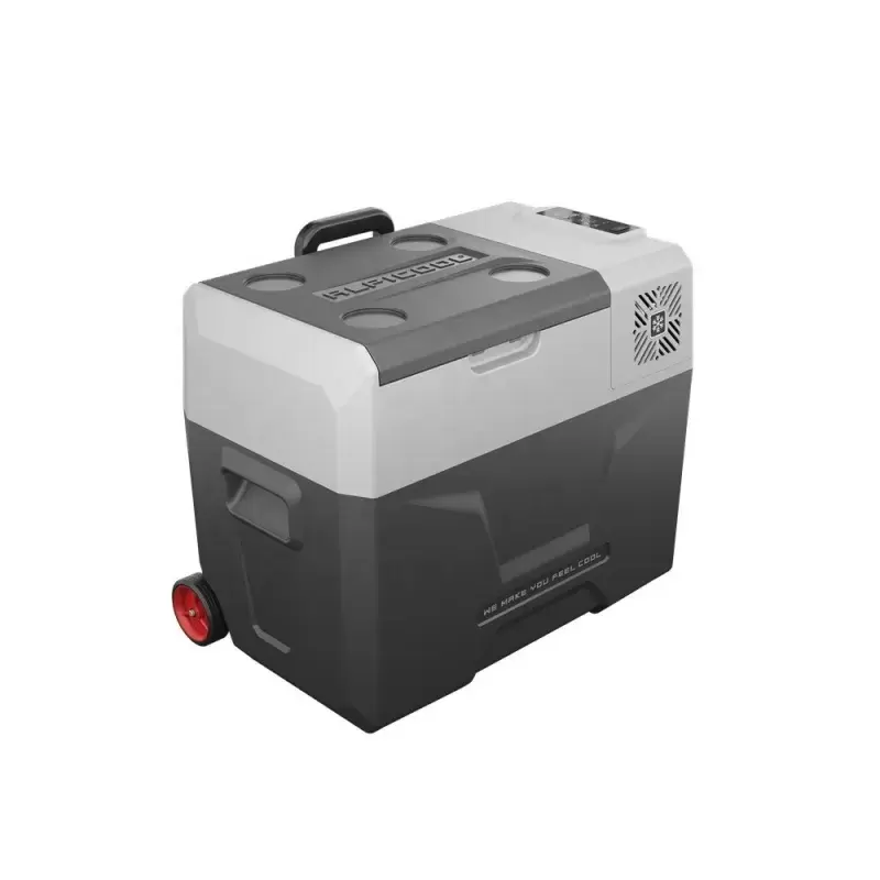 Alpicool 12V, 24V and 220V 40 lt refrigerator with wheels and transport handle.