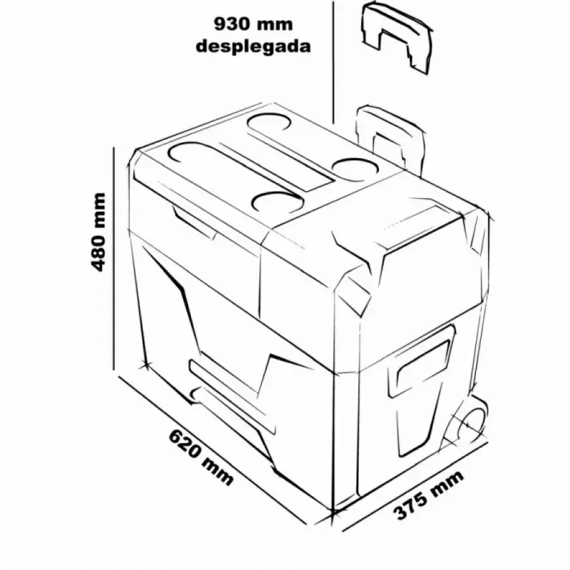 40 liter portable fridge with 12V compressor, bluetooth connectivity through the app for Android and IPhone. Includes cigarette lighter adapter for the vehicle as a 220V adapter. Its extendable handle and built-in wheels make it easy to transport. Low consumption 45W and light weight 13,700kg.