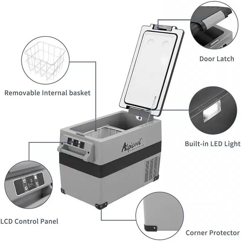 Alpicool CF45 45 liter fridge freezer + BASKET + COVER for caravans, motorhomes, camper and overland 4x4.
