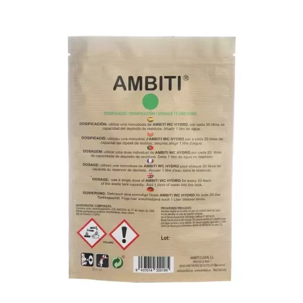 Ambiti Hydro Green in water-soluble single doses for caravans, motorhomes and campervans. - Ref. AM300185