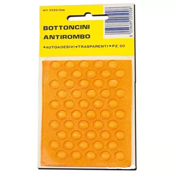 Blister with 50 self-adhesive silicone buttons that will eliminate noise and annoying vibrations from the door of caravan or motorhome furniture.