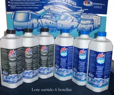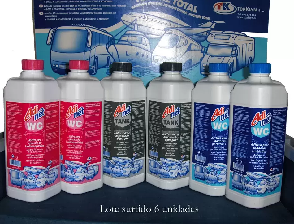 Adinet assorted lot consisting of 2 2L cistern bottles, 2 2L cw toilet bottles and 2 2 L. Tank bottles.
