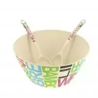 Bamboo fiber salad bowl set with camping caravaning utensils - Ref. 084314