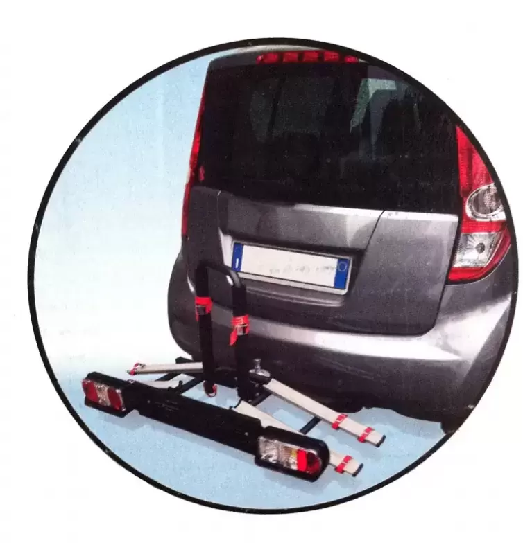Bicycle rack for ball, it is installed on the hitch ball, it can be folded down to open the gate.