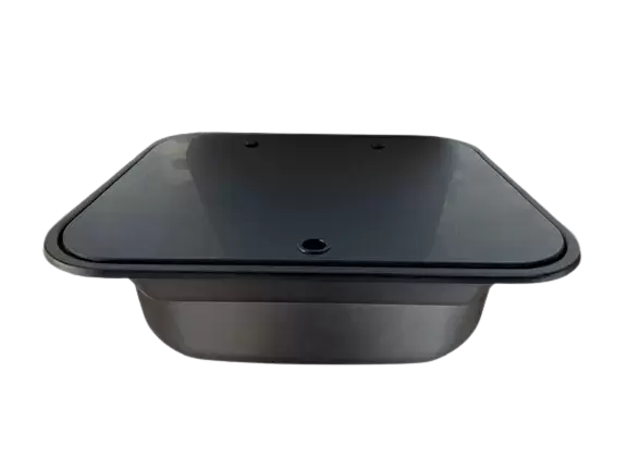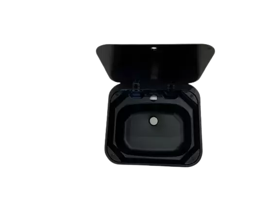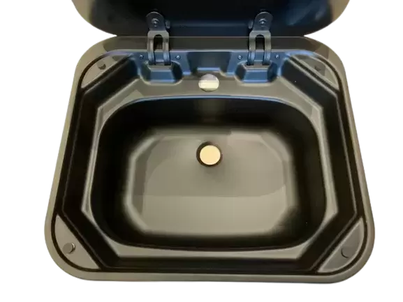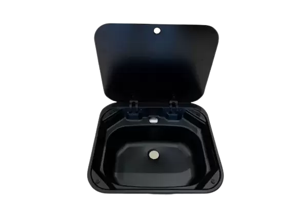 Black sink with glass lid 420x370 for caravans, motorhomes and campers.