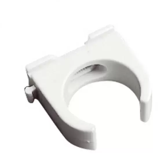White clip for 28mm pipe fixing.