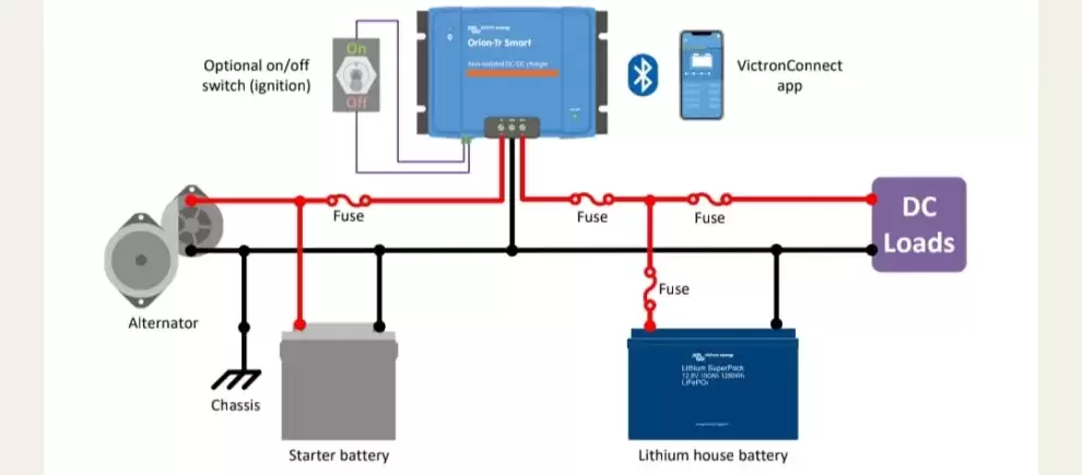 The Orion-Tr Smart DC-DC charger is a professional DC-to-DC, adaptive 3-stage charger with built-in Bluetooth.