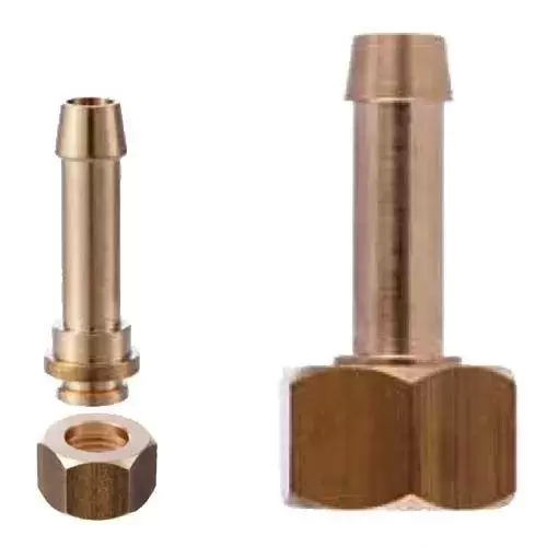 Brass connector with 1/2"-10M/M nut for barbecues and kitchens.