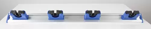Aluminium bar with 4 movable plastic clamps. Maximum capacity of rods with a diameter of 2 cm. For screwing, including screws and plugs.