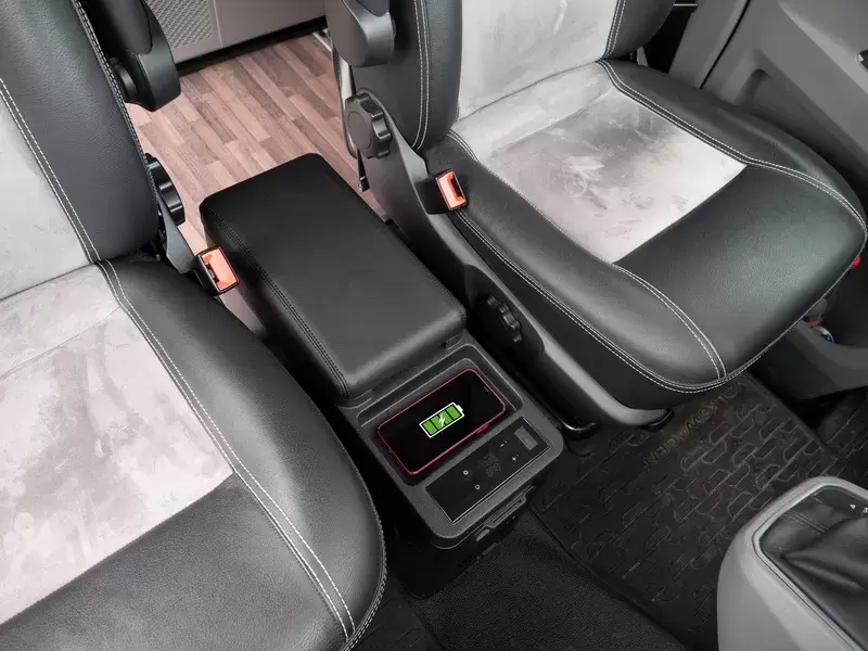 Fits between the driver's seats on VW T5/T6. Adaptable for other vehicle models.
