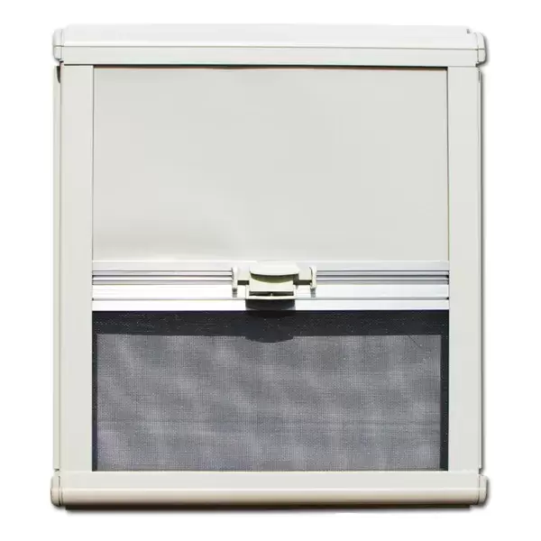 Both the mosquito net and the blind can be mounted interchangeably on the top or bottom.