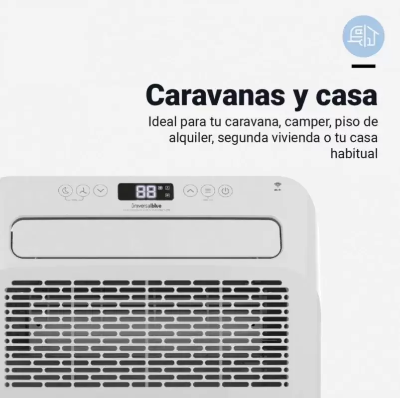 COLORADO ADVENTURE 50212W is the new UniversalBlue portable window air conditioner, the perfect air conditioner to include in any window in your home or motorhome and enjoy fresh air on wheels! You will enjoy all the advantages of a portable air conditioner, being able to transport it easily and install it in any window; and the silence of an air conditioner, thanks to the fact that the motor is in the part that goes outside the window.