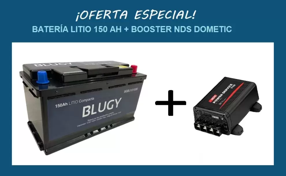 Compact Blugy 150AH Lithium Battery Pack + NDS DOMETIC Powerservice PSB 12V 40A / 60A / 80A Booster for motorhome and camper.