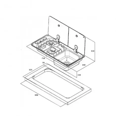 Cooker 2 burners and sink Can FL1401 for caravans, motorhomes and camper.