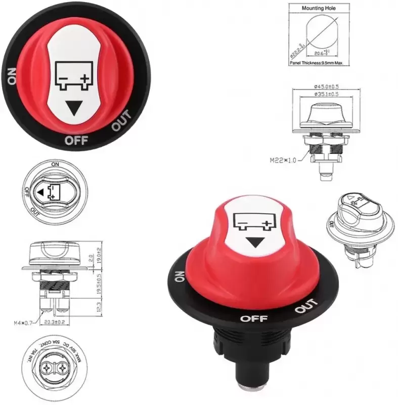 The battery disconnect selector switch is made of strong ABS and metal material, strong, not easy to age and abrasion resistant, to ensure maximum strength and durability for long lasting use.