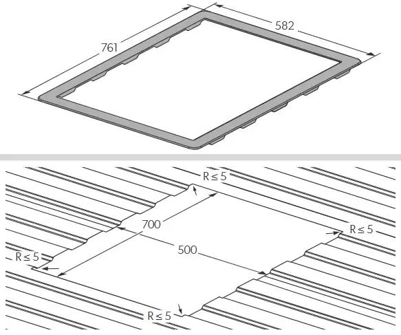 This product is necessary to install a 700x500 Fiat Ducato Camper skylight to achieve a flat base on the roof. It adapts to the shape of the Fiat Ducato roof to facilitate assembly. Only the frame is included.