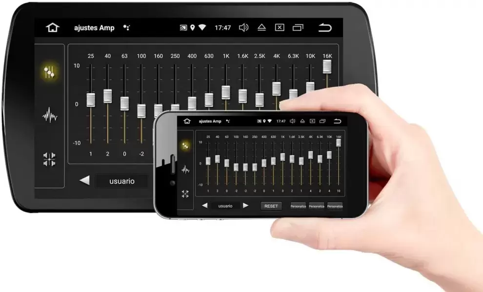 The multimedia station has a WIFI antenna, and is prepared to duplicate your smartphone on the 10.1” multimedia screen thanks to its Easy Connect function that will duplicate your smartphone screen on the EVUS unit. Evus i-link compatible with iPhone and Android. Bluetooth with phonebook download and A2DP.