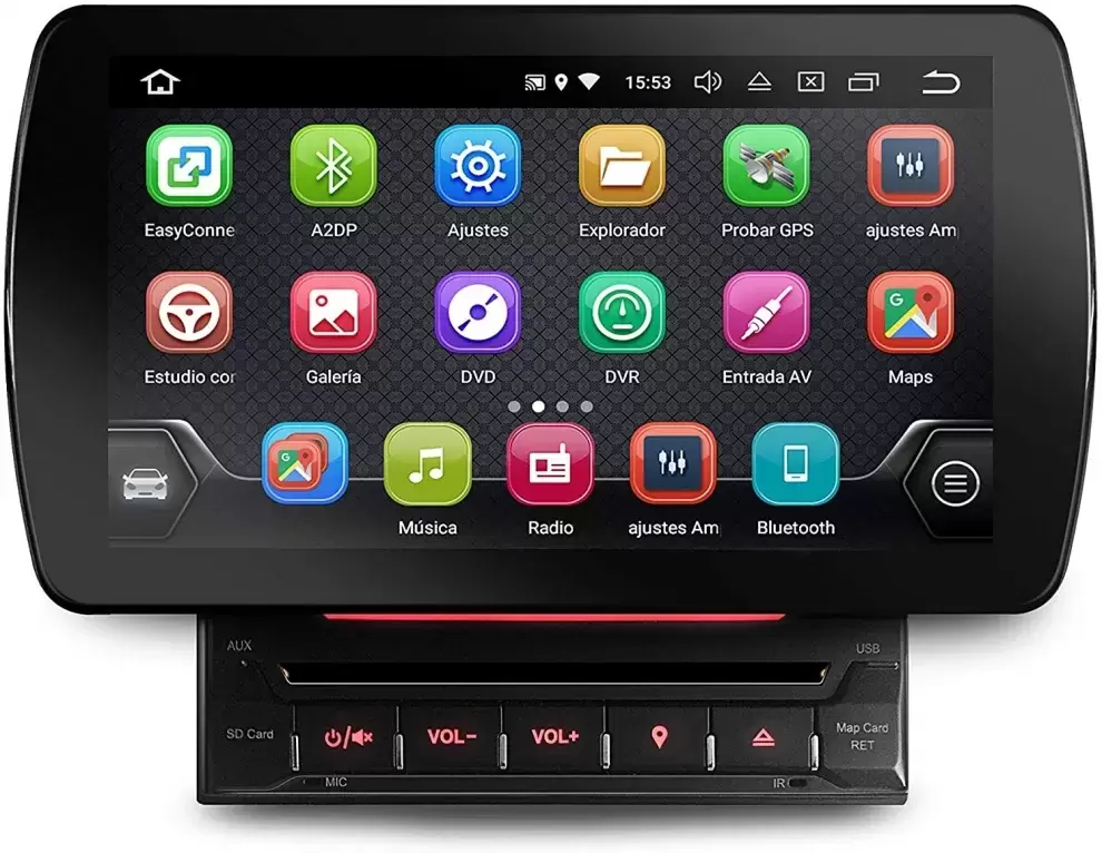 Double Din with 10.1" FLOATING SCREEN EVUS DD800A with DVD, Android 7.1, Wifi, Mirror Link for motorhomes and campers.