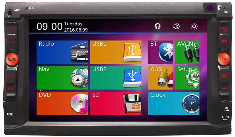 With GPS navigation module. with front and rear USB port and microSD card input.