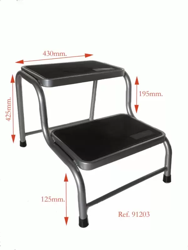 Double entry step with non-slip surface.