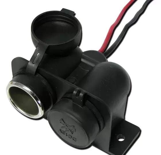 Double 12v waterproof socket with cover and 15Ah of max power.