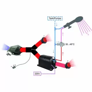 using the built-in electrical cartridge. The water is heated to about 70 ° C.