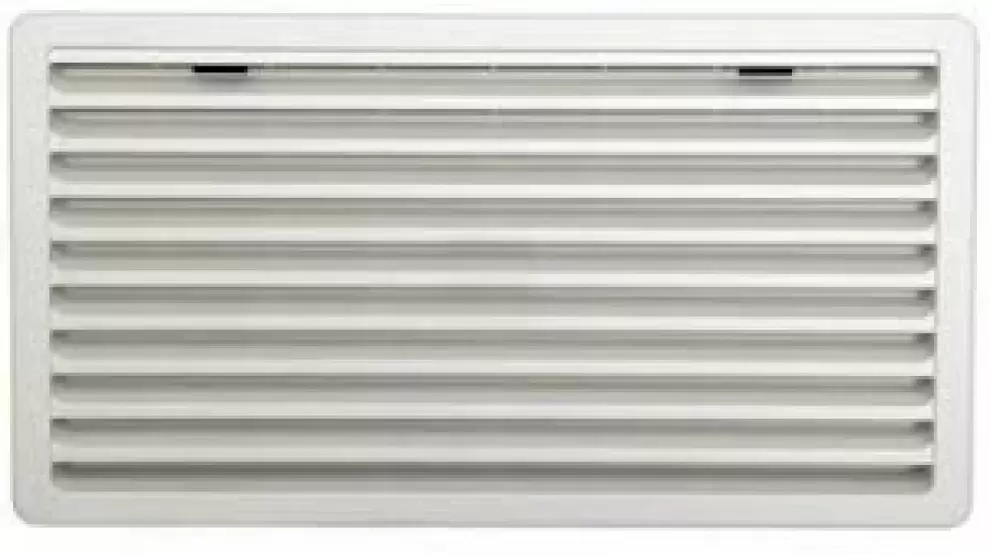Exterior grille for Thetford brand refrigerator in very light gray color.