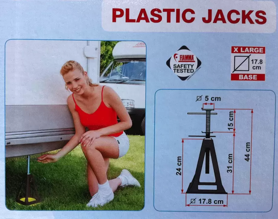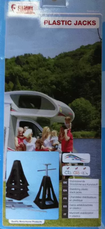 Made of black plastic, suitable both for stabilizing a caravan and for relieving the weight of the motorhome suspension.
