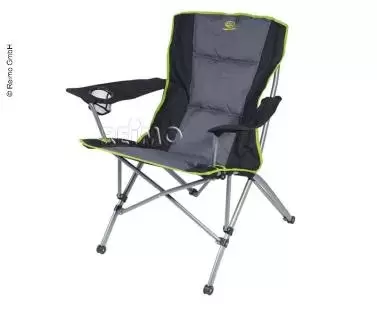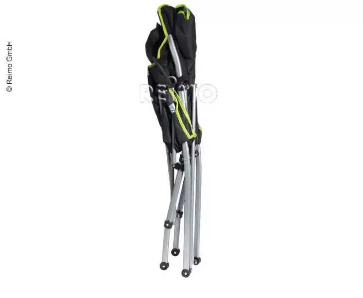 Folding chair with a straight seat, which prevents it from sinking into the chair. Color: green / black / lime. Width of 80 cm. Total height: 93 cm. Seat approx B58xT39cm. Seat height 47cm. Weight: 4.2 kg. Load capacity up to 120 kg. 110xØ18cm pack size