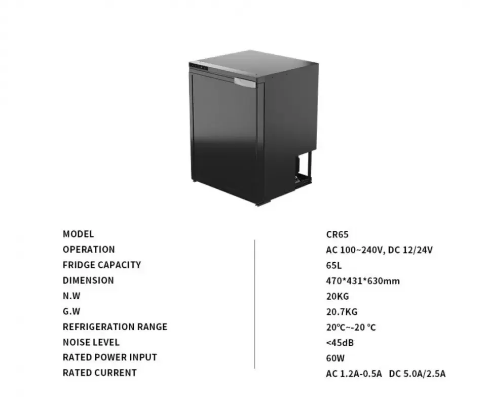 Fridge Freezer with compressor 65 Liters CoolZone, 12/24V for caravans, motorhomes, camper and overland 4x4. - Ref. CR65