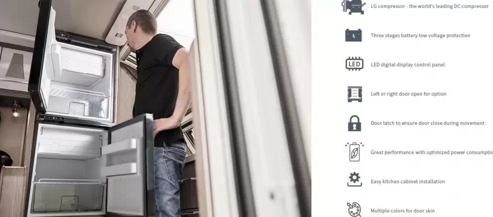 Ideal for Camper vehicles, with 2 refrigerators one on top of the other you can achieve a capacity of 130 liters with separate freezers and refrigerators.