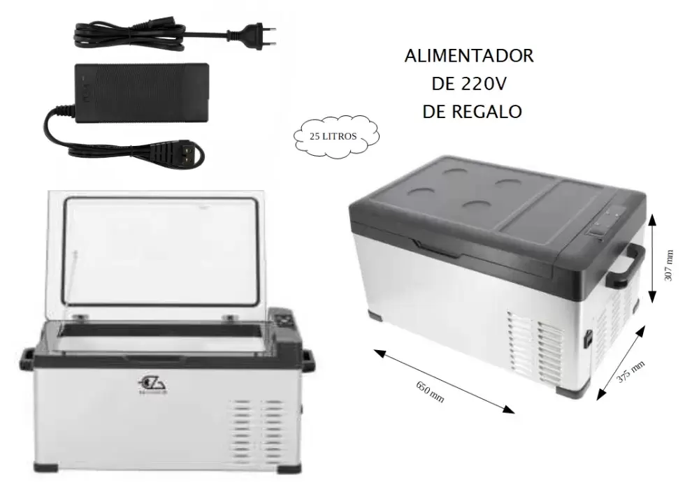 Fridge freezer EZA 25 Liters metal casing compressor 12V + 220V connector as a GIFT, Caravans, motorhomes, camper and 4x4 overland. - Ref. 522350