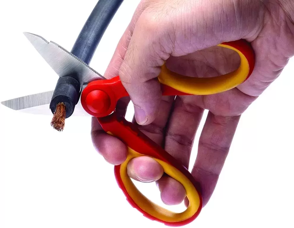 Fumasi Vanadium Steel electrician scissors with 5.75" 145 mm micro-serrated blades.
