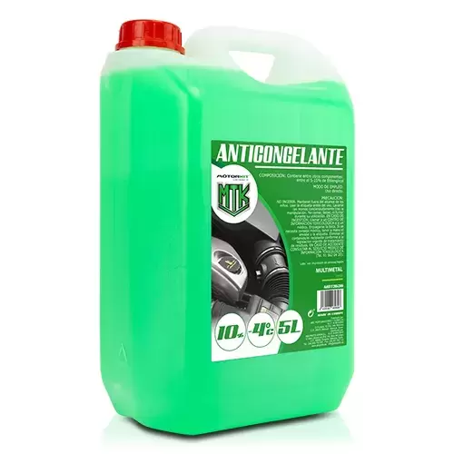 Green coolant antifreeze 10% -4ºC in 5 liter bottles. - Ref. MOT3536
