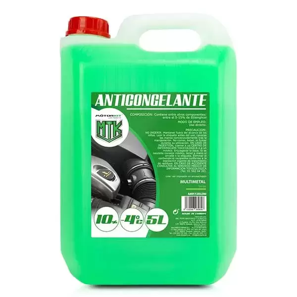 Green coolant antifreeze 10% -4ºC in 5 liter bottles.