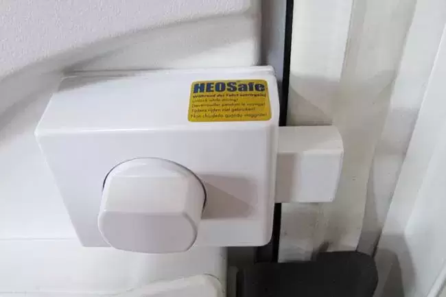 HEOSafe® additional lock specially built for exterior hatches, garage doors, exterior doors not only for motorhomes and caravans, but also for mobile markets and food trucks