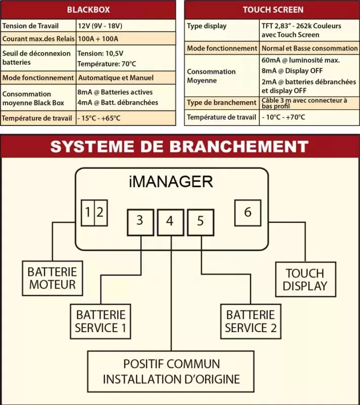 -iManager is an innovative system that manages all onboard batteries and power needs. It allows avoiding the "permanent parallel" connection of the service batteries.